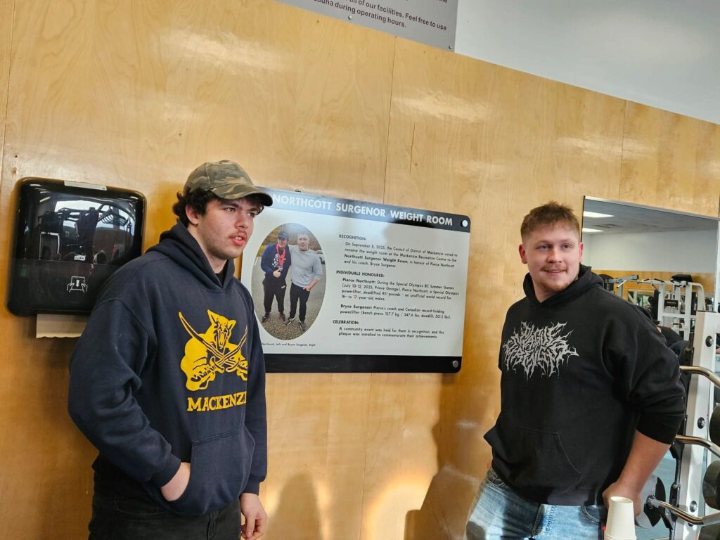 Photo credit: Rae Surgenor Photo credit: Megan Brumovsky The District of Mackenzie is honoured to recognize two extraordinary members of our community by renaming the Mackenzie Recreation Centre weight room after Special Olympics powerlifter Pierce Northcott and his coach, Bryce Surgenor. Pierce has become an inspiration in Mackenzie through his commitment to training, his determination,…