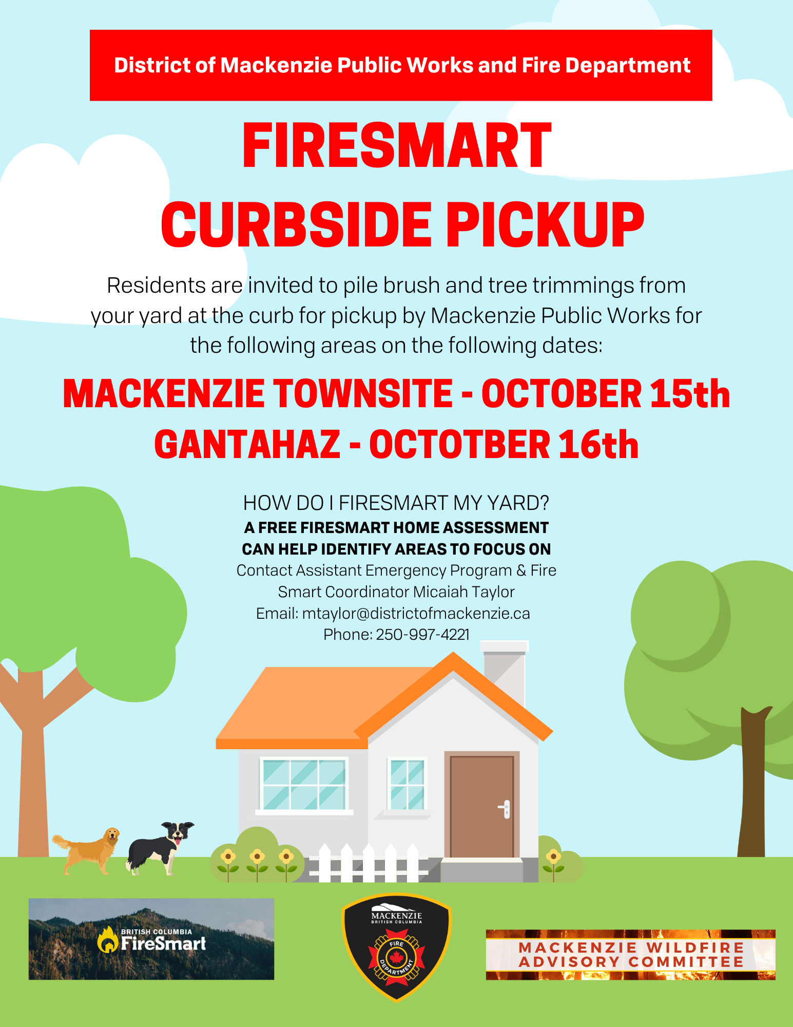 FireSmart Curbside Pickup – Mackenzie Townsite – October 15th, Gantahaz October 16th.