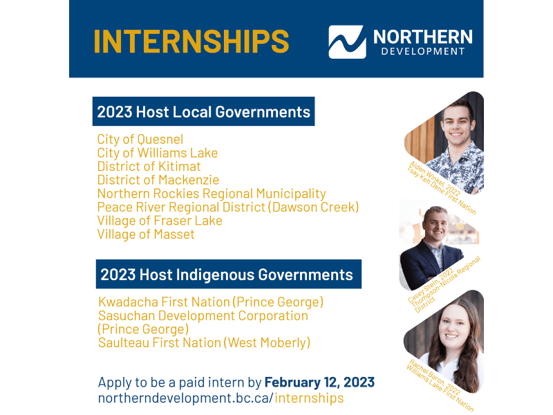 We are delighted to announce that the District of Mackenzie has been awarded a grant from the Northern Development Initiative Trust (NDIT) to host and mentor a local government intern in 2023. This grant will provide invaluable support to the District, helping us to promote and develop our local government capacity. The intern will have the opportunity to learn about the intricacies of municipal government and gain insight into the day-to-day operations of our local government.